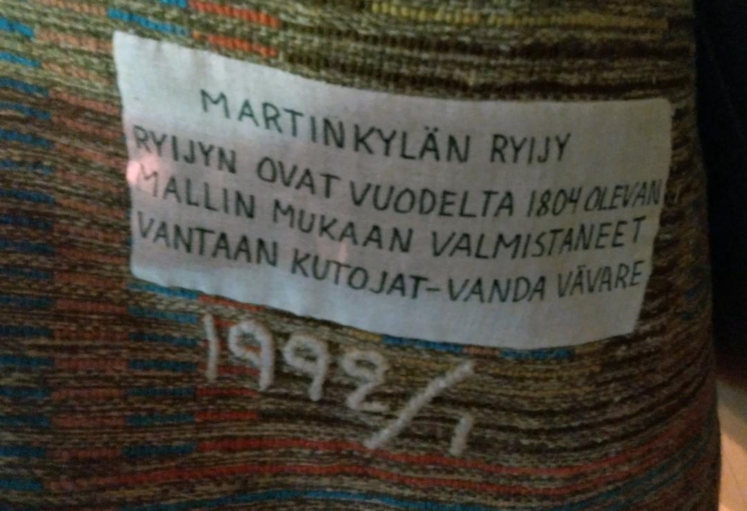Vuonna 1991 Vantaan kaupunginmuseoon lahjoitettiin kokoelmien ensimmäinen ryijy: Martinkylän ryijy vuodelta 1804. Nyt museossa lähdettiin selvittämään ryijyn vaiheita. Mitä kaikkea ryijystä voidaan päätellä?