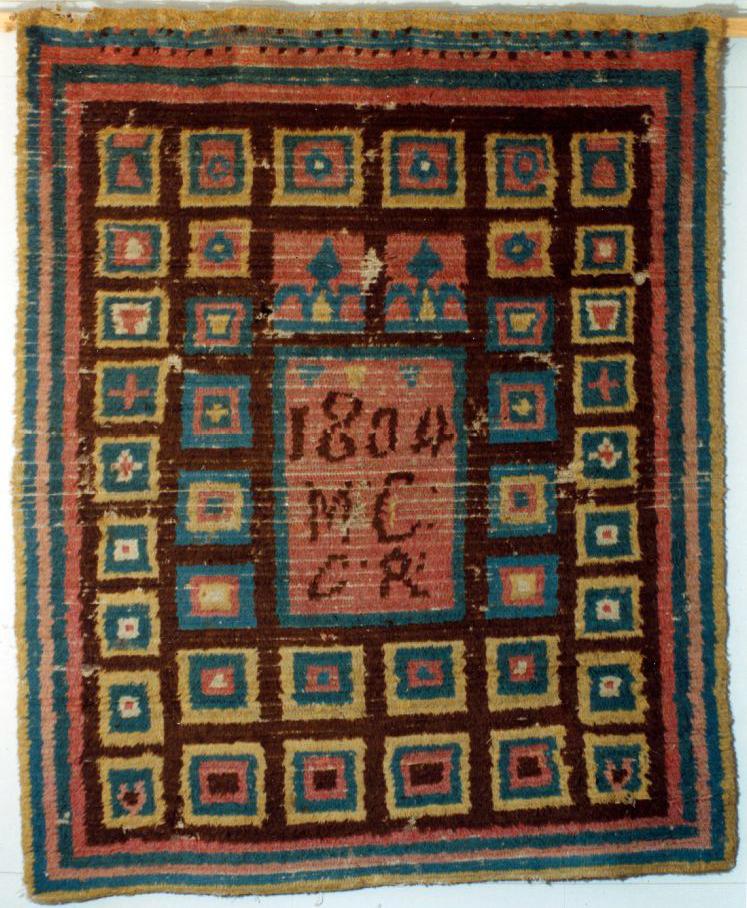 Ruudulliseen ryijyyn on kudottu nimikirjaimet ”M.C.” ja ”C.R.”. Nimikirjainten alkuperää on haettu Smedsin tilan omistajista ja asukkaista Helsingin pitäjän rippikirjoista, toistaiseksi tuloksetta.