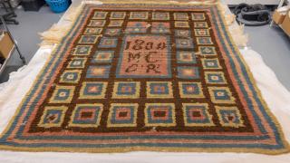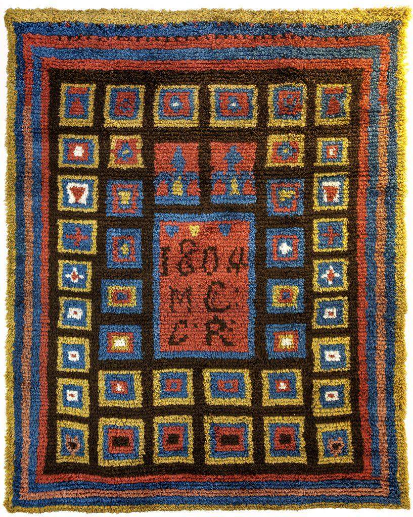 Martinkylän ryijy vuodelta 1804 on Vantaan kaupunginmuseon kokoelmien vanhin ryijy. Kuva: Vantaan kaupunginmuseo