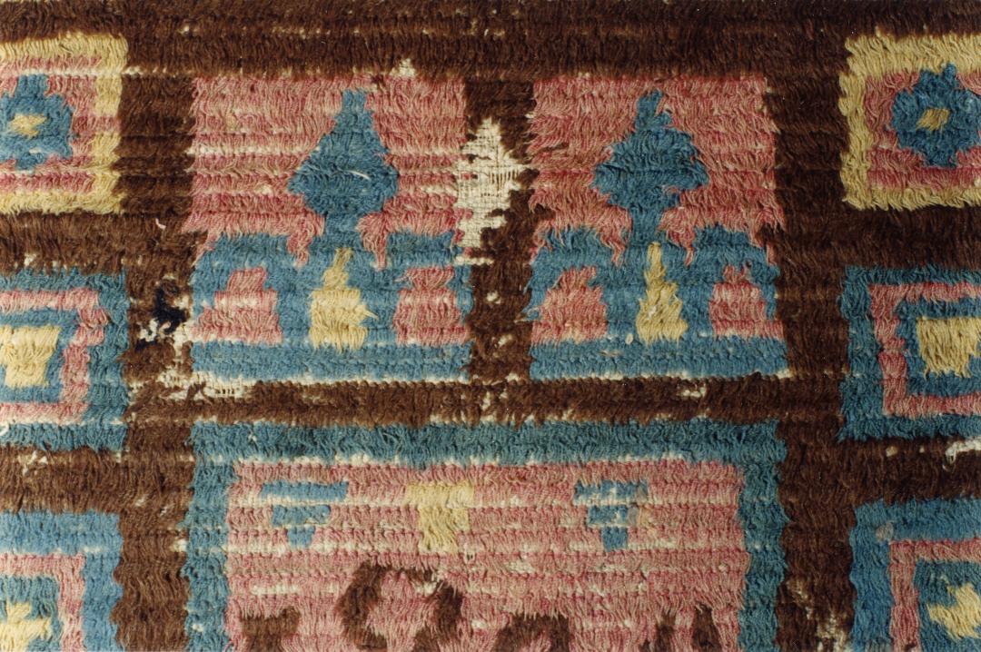 Kuvio muodostuu myös ryijyn nurjalle puolelle. Toisinnot Vantaan kutojilla valmistettiin Liisa Viitasen johdolla. Kuva: Päivi Yli-Karhula, Vantaan kaupunginmuseo.