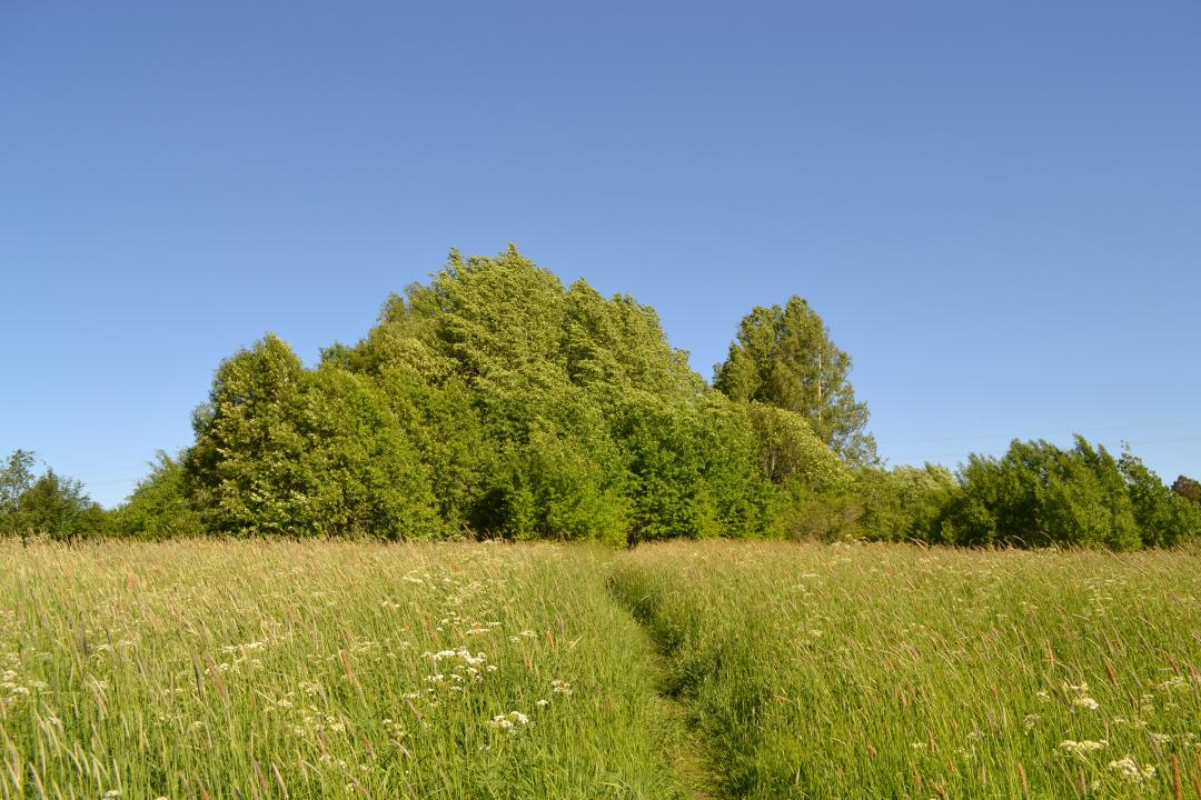 Övitsbölen autiotontin metsäsaareke etelästä kuvattuna. Metsäsaarekkeelta on löytynyt merkkejä rautakauden lopun ihmisasutuksesta. Kuva: Tiina Mikkanen, Vantaan kaupunginmuseo.
