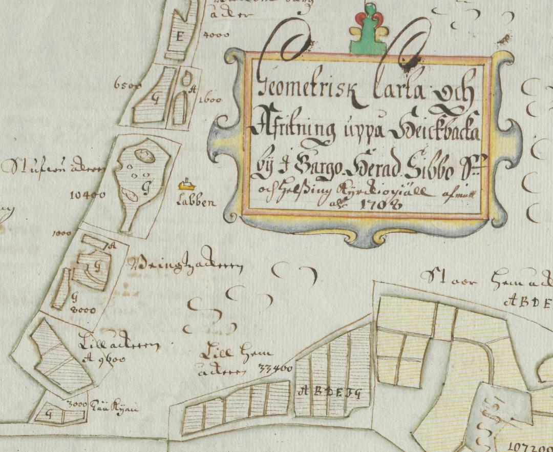Ote Samuel Broteruksen Helsingin pitäjän Länsisalmea (Västersundom) kuvaavasta kartasta vuodelta 1708. Kartassa erottuu Labben-niminen tila. Mahdollisesti tilan nimi on perua tilalla joskus asuneesta lappalaisperäisestä henkilöstä. Vastaava Labbas-niminen tila löytyy myös Tavastbystä, eli Hämeenkylästä. Kuva: Kansallisarkisto.